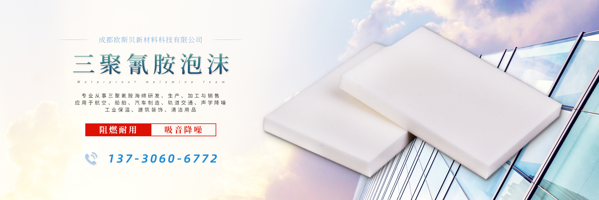 服務熱線: 成都歐斯貝新材料科技有限公司是一家專業(yè)從事三聚氰胺海綿研發(fā)、生產(chǎn)、加工與銷售的高科技公司。專業(yè)的人才結(jié)構(gòu)及多年積累的技術(shù)沉淀保證了公司在國內(nèi)的科研生產(chǎn)及質(zhì)量管控能力。開發(fā)的產(chǎn)品已廣泛應用于航空、船舶、汽車制造、軌道交通、聲學降噪、工業(yè)保溫、建筑裝飾、清潔及日用品等多個領域,受到了國內(nèi)外客戶的一致好評!成都歐斯貝新材料科技有限公司以專業(yè)的研發(fā)能力,過硬的產(chǎn)品質(zhì)量,真誠完善的專業(yè)化售前售中售后服務致力于打造國內(nèi)三聚氰胺海綿行業(yè)的明星企業(yè),與客戶一起再創(chuàng)新的輝煌!
